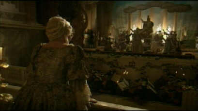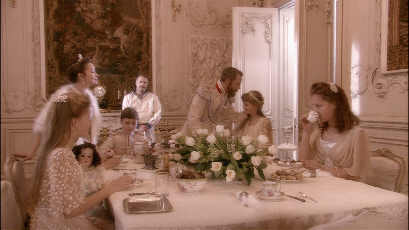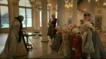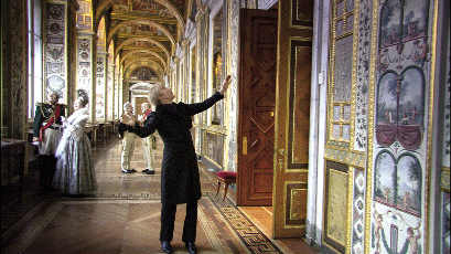 Exploring the splendid corridors and salons of the Palace, the Marquis and the filmmaker witness astonishing scenes from the Tsarist Empire: Peter the Great thrashes his general with a whip; during rehearsals of her own play, Catherine the Great rushes around looking for a place to relieve herself; the family of the last Tsar dine together, oblivious to the impending revolution; and hundreds of dancers waltz at the last Great Royal Ball of 1913 with Valery Gergiev conducting.